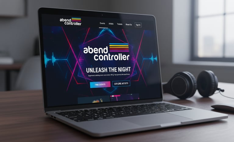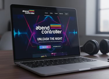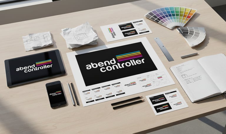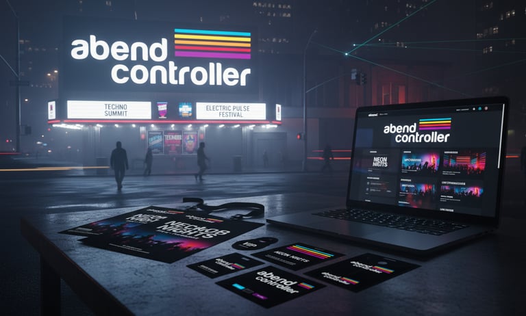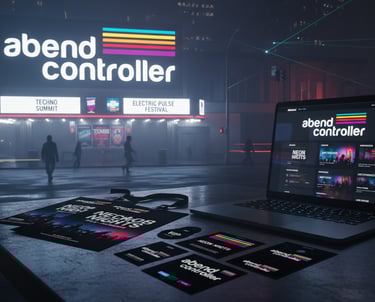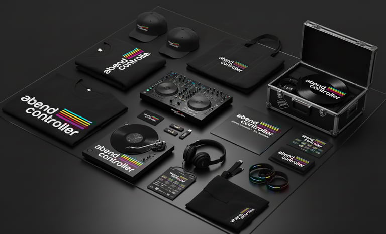 Identidad visual y sistema gráfico para Abend Controller, marca vinculada a eventos de música electrónica y DJ culture. El logotipo combina tipografía geométrica blanca con líneas horizontales multicolor que simbolizan frecuencia, energía y ritmo. El sistema se expande en soportes digitales, merchandising y escenarios, transmitiendo vanguardia y espíritu electrónico.