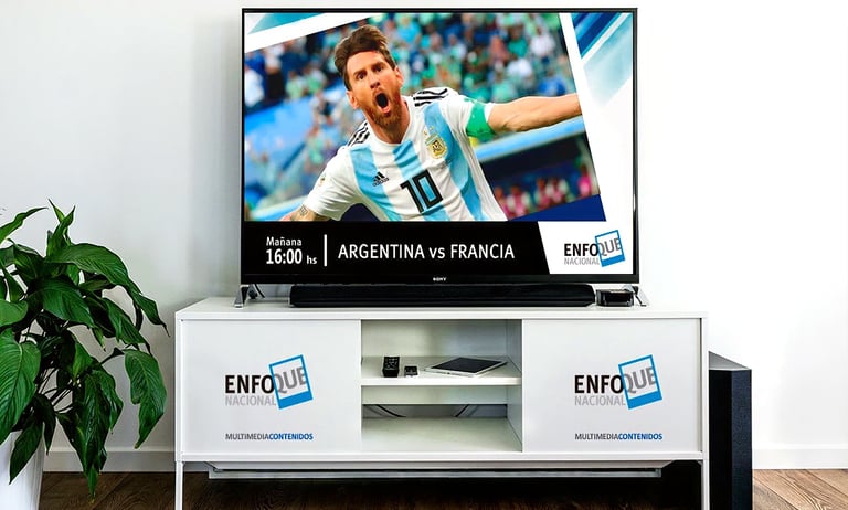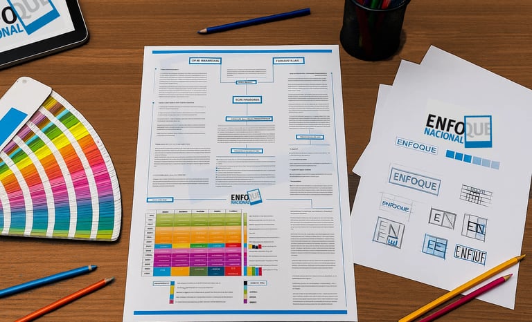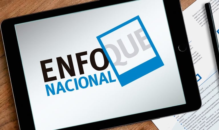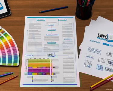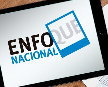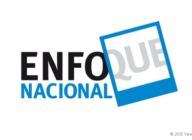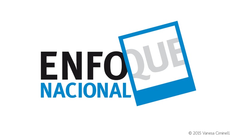 Diseño del logo y sistema visual de Enfoque Nacional plataforma de streaming. Identidad combina tipografía sólida en negro con un marco dinámico azul que simboliza la pantalla digital y la mirada plural. El conjunto transmite modernidad, claridad informativa y conexión entre territorios y audiencias.