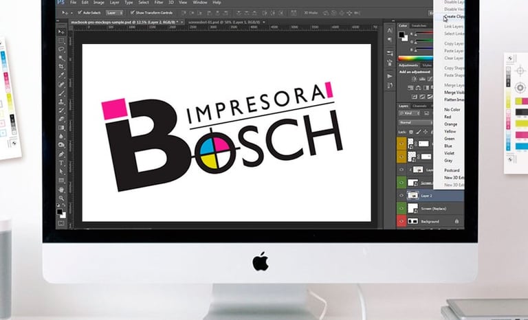 Identidad visual y presencia web para Impresora Bosch, gráfica especializada en impresos comerciales. El isologo integra una “B” sólida con referencias directas al mundo CMYK —blanco, magenta, cian y amarillo en diana de registro— y una composición diagonal que aporta dinamismo. El sistema se aplica en sitio web, papelería y piezas promocionales, reforzando precisión y servicio profesional.