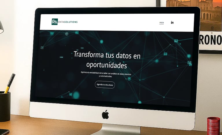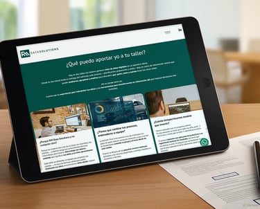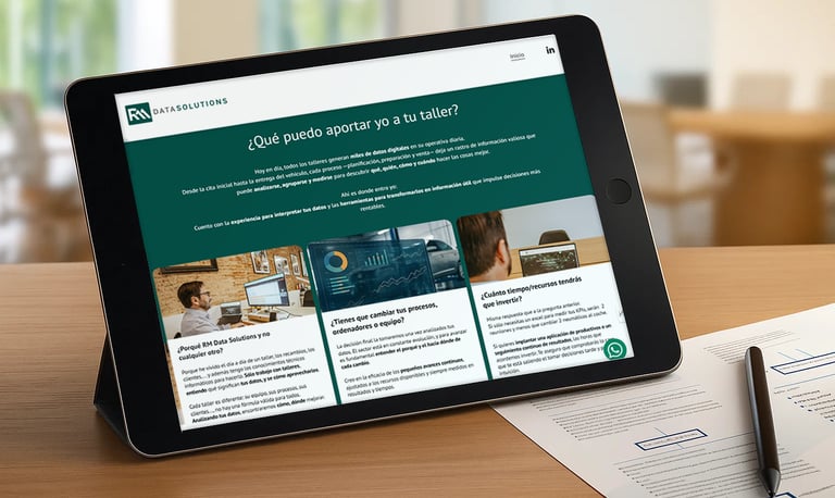 Identidad y sitio web para RM Data Solutions, consultora especializada en análisis de datos y rentabilidad para el sector automotriz. El diseño equilibra tecnología y confianza: tipografía técnica, paleta sobria y estructura clara que comunica precisión. Web funcional, adaptable y optimizada para presentar servicios y soluciones de forma ágil.